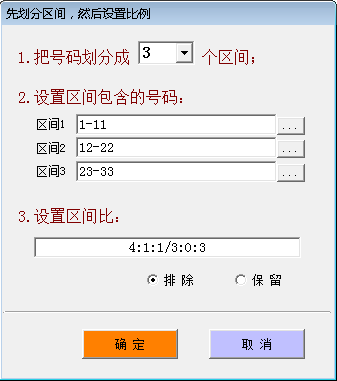 通过上面3个步骤就完成了区间比的设置,在生成投注号码过滤的时候软件会按照设定的要求来筛选符合条件号码组合。