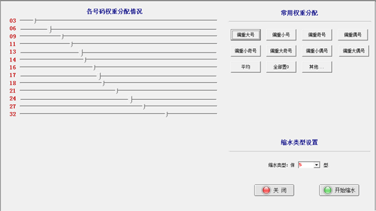 关于权重分配,尽量给自己认为开出几率高的号码分配大的权重,这样可以提高它们在最终缩水后号码的出现频率(注,无论号码的权重如何分配都不会影响到保N型缩水的效果的)。